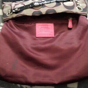 Coach Black Gray Pink Canvas Chain Strap Shoulder Tote Handbag No H1282-21161