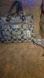 Stylish spacious Coach tote and matching zippered coin purse wallet with iconic pattern. The zippered coin purse/bag attaches to the handbag and is removable. Features black handles and gray body. Spacious front zippered pocket with large interior zippered pocket and 2 open pockets. Has 2 hanging bag tags. Perfect for daily use or any occasion.