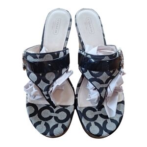 Coach Black Gypsy Signature Patent Wedge Thong Sandals 10b