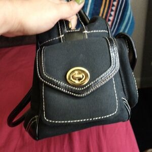 Elegant black handbag. Features dual front pockets. Gold hardware details. Perfect for any occasion.please see pictures it is also a bit dusty since it has been stored