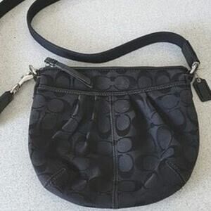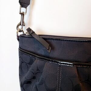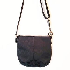 Coach Black Jacquard Signature Logo Adjustable Crossbody Bag Silver hardware