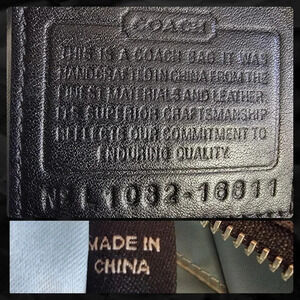 Coach Soho Signature Jacquard bag in Khaki/Chestnut, #6376. A classic Y2K bag made in 2003, she is in pristine condition! Brown leather carry straps, buckle and other accents. Deep brown interior. Has 2 slip pockets and interior zipper pocket with leather zipper pull. Bonus slip compartment under the flap behind the main compartment, and a slip pocket in the rear of the bag. Inside is a light blue satin, with 2 slip pockets and 1 zipper pocket.
