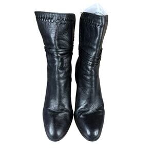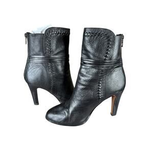 Coach Black Leather Ankle Boots Heels Zip Back Braided Detail 7.5B