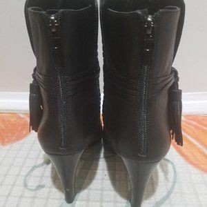 Coach Black Leather Bootie Heels with Semi Pointed Shape Toe 9.5B Back Zipper