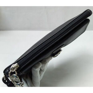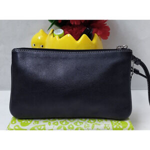 Coach Black Leather Buckle Flap Closure Wristlet - Coin Wallet