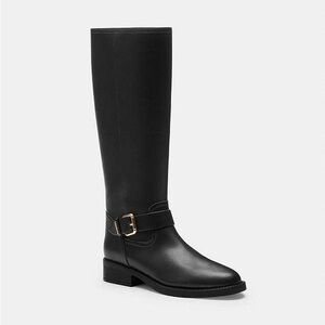Coach Black Leather Buckle Heeled. Boots Has extended leg zippers