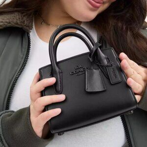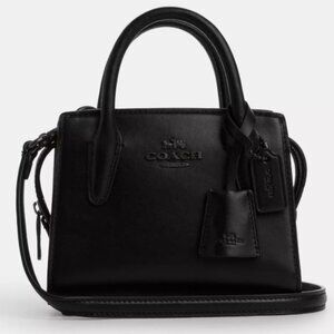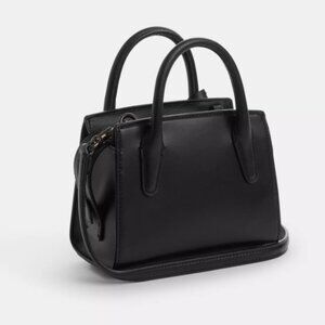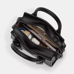Elegant black leather clutch. Features top handles and detachable strap. Perfect for any occasion.