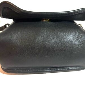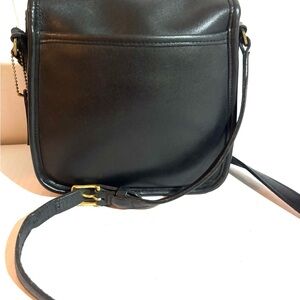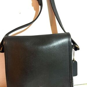 Coach #A0N-9976 vintage main compartment 1 open pocket at interior wall brass hardware raw suede lining open pocket at interior wall lining have some stains exterior minor scratches hangtag at side hight 9” wide 9” depth 3” strap drop 24”Sleek and stylish black leather crossbody bag. Perfect for any occasion. The dimensions are based on approximately measurements before placing an order please check take a moment to view all photos using feature for a closer look