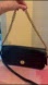 Sleek black leather crossbody bag. Features a stylish gold chain strap. Ideal for versatile wear.