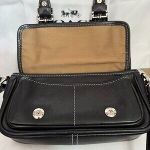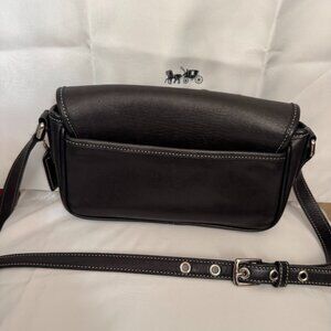 Vintage Coach Y2K Bleecker Double Buckle Black Leather Crossbody / Shoulder Saddle Bag