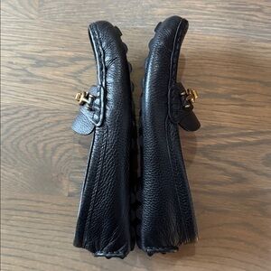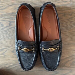 Coach Black Leather Driver Loafers with Gold Accent