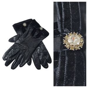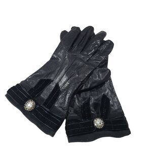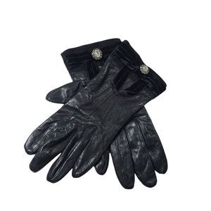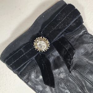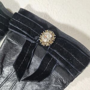 Coach Black Leather Gloves Bow Sz 7 Silk Lined Velvet Ribbon Rhinestones #2136