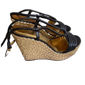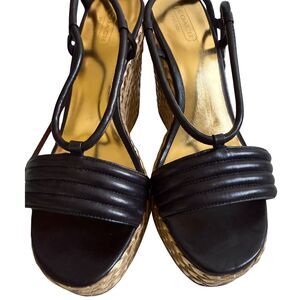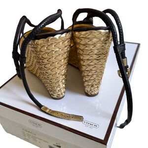 Coach Black Leather & Gold Braided Wedge Platform Sandals – Size 8.5
