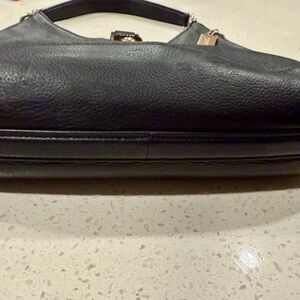 Elegant Coach hobo bag in black leather. Features gold hardware and a sleek design. Ideal for daily wear.