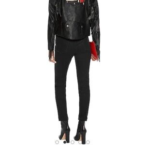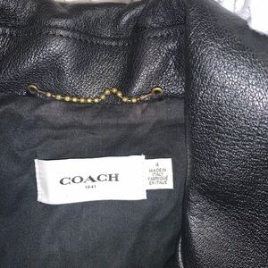 Coach Black Leather Jacket with Fringe and Ribbed Hem