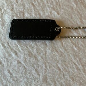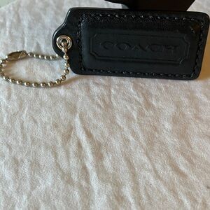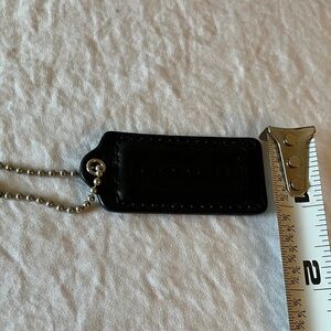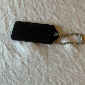 Coach: Black Leather Key Fob Hang Tag/Charm- Silver Tone