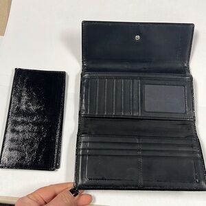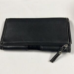 Coach Black Leather Large Clutch Wallet with separate Checkbook Cover