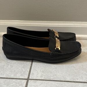 Coach olive loafers in black, gold buckle. Excellent condition! The right shoe has some wear on the gold buckle, can be seen in last picture!
