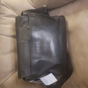 Elegant Coach messenger bag in dark leather. Features adjustable strap and secure buckle closures. Ideal for daily use. Black soft leather stunning messenger/computer bag. no call outs. Has adjustable crossbody strap