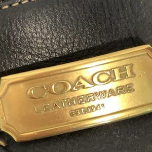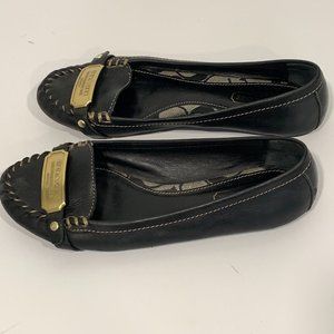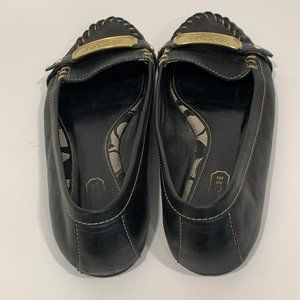 Coach Black Leather Olympia Loafers Flats Gold Tone Metal Logo Stitching Sz 6.5M