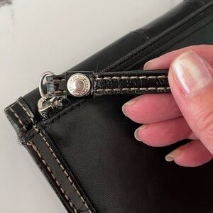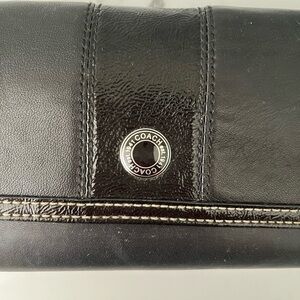 Coach Black Leather Patent Leather Stripe Wallet with Check Book Cover