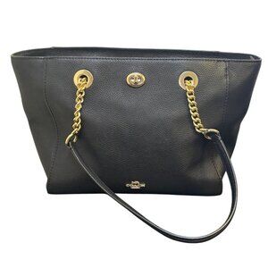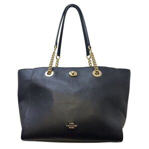 This Coach shoulder bag offers a sleek design with durable leather and elegant gold chain straps. Ideal for carrying essentials with style and sophistication.