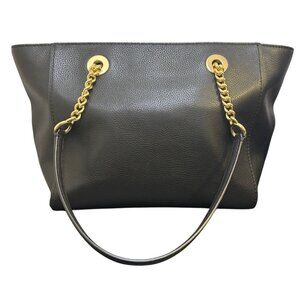Coach Black Leather Shoulder Bag With Gold Chain Straps