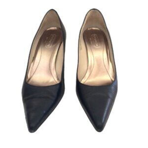 Coach Black Leather Stiletto Pumps Sz 7.5 Pointed Toe High Heels Made in Italy