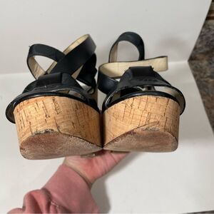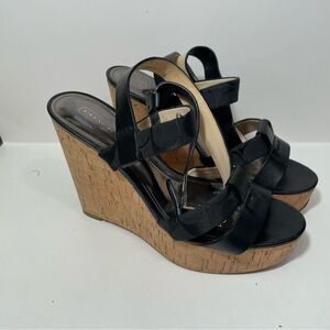 Gently worn women’s size 7.5 coach black Strappy wedge sandals. Please review all photos for any signs of wear-pictured as is. Disclaimer: Any items with any wear/staining has not been treated, and unsure of ability to remove/treat condition. Comes from a smoke free home, bundle with other items to save & minimize shipping cost.