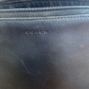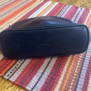 This used vintage (I believe early 2000’s)Coach toiletry bag in black leather offers a sleek and polished look, perfect for organizing your personal care items. Its dome shape and firm structure ensure it maintains its form, while the minimalist design adds a touch of classic elegance to your travel essentials.