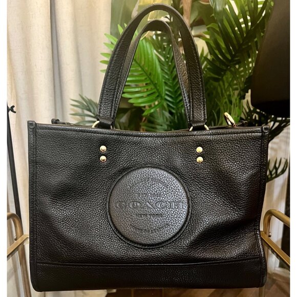 Coach Black Leather Tote Bag With Gold Hardware & Embossed Logo
