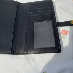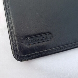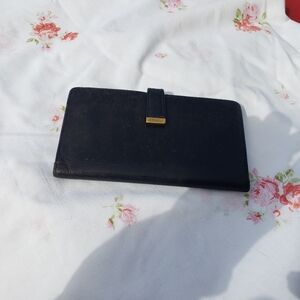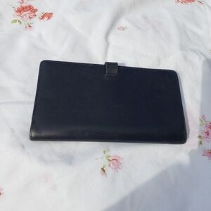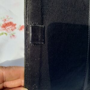 Sleek black leather wallet featuring a gold accent. Perfect for everyday use.