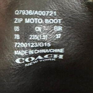 Coach Black Leather White Shearling Silver Hardware Zip Moto Biker Boot Size 7
