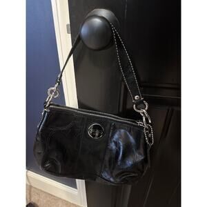 This Coach Black Leather Wristlet Purse combines timeless style with everyday function. Crafted from soft genuine leather with detailed white stitching, this compact bag features a top zip closure, signature silver Coach hardware, and an interior fabric lining. Perfect for carrying your essentials like keys, cards, and phone — great for day or evening use.
