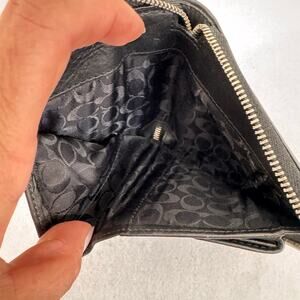 coach wallet, black leather wallet, compact wallet, everyday essentials, minimalist style, quiet luxury, classiccore, unisex accessories, vintage coach, zip around wallet, designer wallet, timeless leather