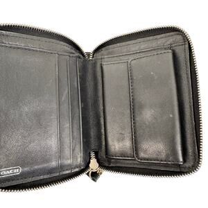 Coach Black Leather Zip Around Compact Wallet Bifold Coin Pocket Vintage