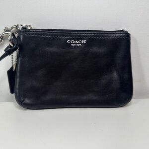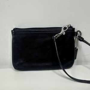 Coach Black Leather Zip Wristlet Wallet Charm Small