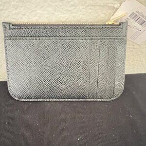 Elegant black leather card holder by Coach. Features a sleek design with a gold logo accent5 x 3.5 inches