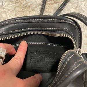 Elegant Coach messenger bag in black leather. Ideal for daily essentials. Combines style and practicality. Small messenger bag from coach, super cute I just never use it. Excellent condition!