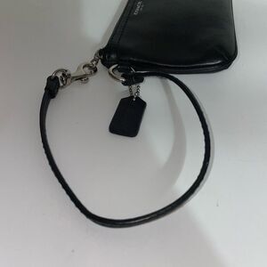 This sophisticated black leather clutch from Coach showcases a sleek design, ideal for elevating any outfit. Crafted with high-quality materials, it embodies a timeless elegance that suits both casual and formal settings. Its minimalist aesthetic ensures it remains a versatile staple in your accessory collection.