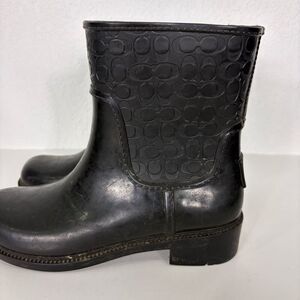 Good condition Coach Black Monogram Mid Calf Pull On Rain Boots Women's Size 5