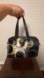 Throwback Coach bag with “C” design. Bag is patent leather black and features yellow/cream, silver, and suede blue Cs on the front. Includes silver accents and a yellow/cream tag. Bag does not have a crossbody strap, yet has a ring on each side to install one. Some markings on the bag noted in the pictures. Inside is very spacious and has one zipper compartment on one side and two open compartments on the other.