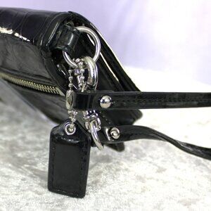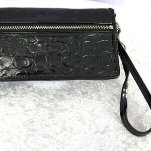 Coach Black Patent Leather Embossed Signature C Heart Logo Wristlet Wallet