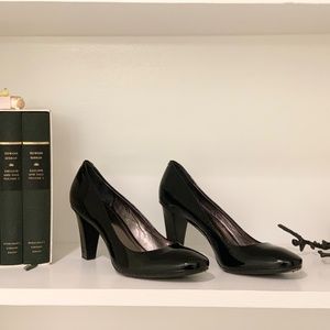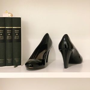 Coach 3 1/4 inch patent leather heels. Some scuffing on the souls but otherwise in excellent condition. Try as I might, I cannot walk in heels and so these beauties are in great shape!