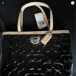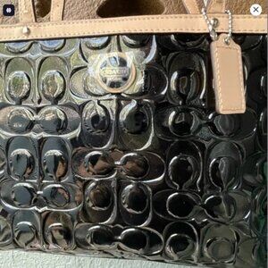 Coach Black Patent Leather Tan Tote Bag new with tags