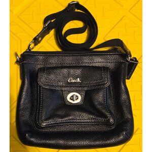 Coach Black Pebble Leather Crossbody Bag With Adjustable Strap & Twist Lock Pock