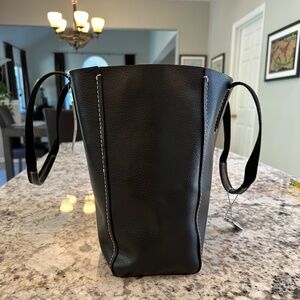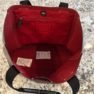 Coach Black Pebble Leather Derby Tote New with Tags Burgundy Red Interior