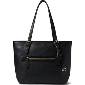The Coach Black Pebble Leather Taylor Tote is a stylish and spacious shoulder purse perfect for any fashion-forward woman. Made from luxurious black leather with a pebbled finish, this rectangular tote features a zip closure and double black leather handles. The bag also includes inner pockets for organization and a chic bag charm accent. With a classic solid pattern and designer theme, this Coach Taylor model exudes elegance and sophistication. Ideal for everyday use or special occasions, this large tote is a versatile accessory that will elevate any outfit.