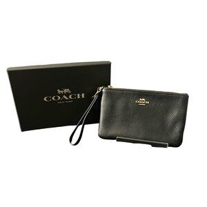 Coach Black Pebble Wristlet With Leather Hang Tag and Gold Hardware