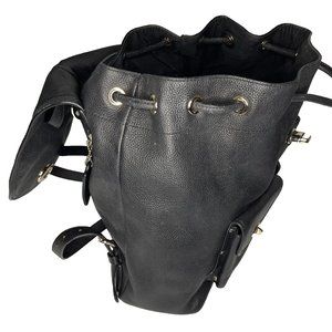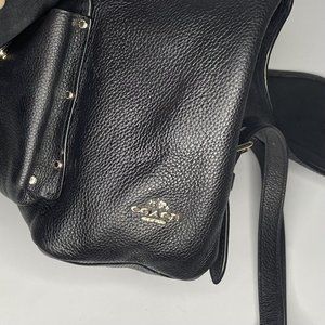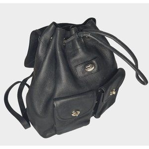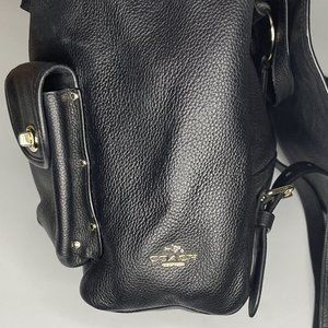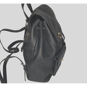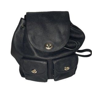 Coach Black Pebbled Leather Backpack Bag Large Turnlock Adj straps 12" high